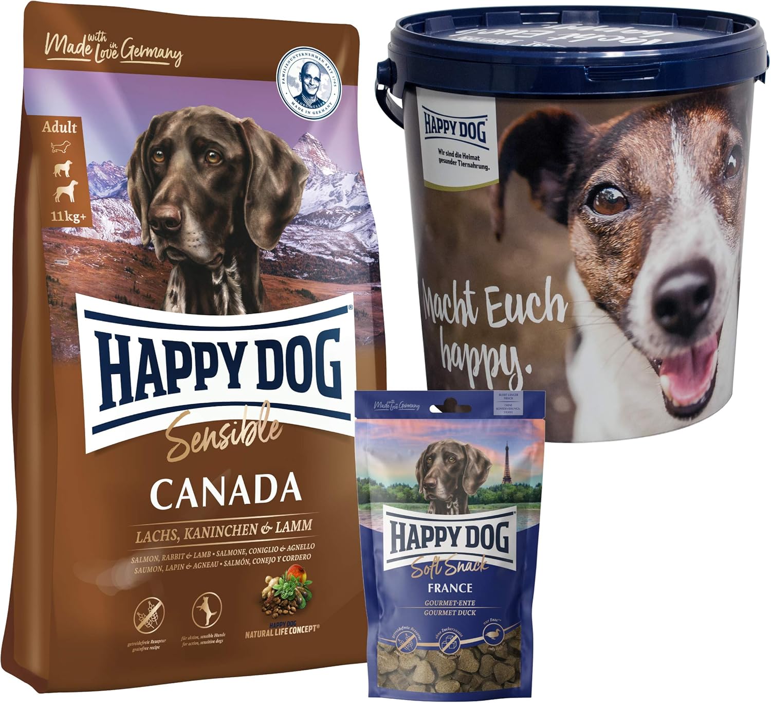 Happy Dog Canada Salmon Rabbit And Lamb 4 0 Kg 1 X Soft Snack New Zealand Lamb 100 G 20 Litre Food Bin Including Lid Amazon De Pet Supplies